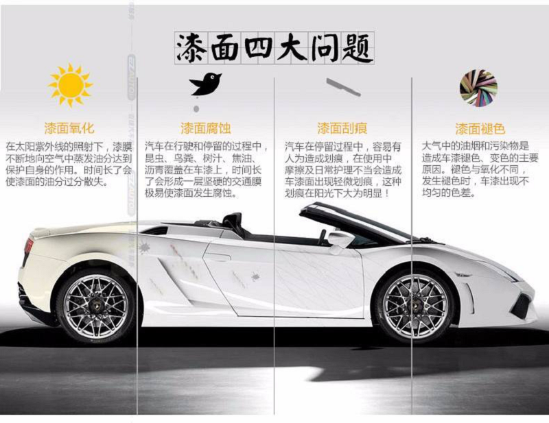隐形车衣如同衣服一样,如果我们不加以保护,在使用一段时间后就会到达使用年限。原本质保十年的隐形车衣,如果后期不注意养护使用年限可能会直接缩水到十分之一。后期应该怎么注意,我做了个简单整理: